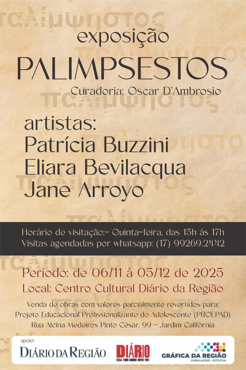 Manuscrito em pergaminho que, na Idade Média, após ser raspado e polido, era novamente aproveitado para a escrita de outros textos, o palimpsesto se faz muito presente, de maneira prática, na arte contemporânea. É o que ocorre sempre que existe a retirada de algum material, com as mais diversas técnicas, e uma sobreposição, das formas mais variadas, de elementos visuais ou escritos. Este projeto pode ser visto como um órfico de iniciação. Trata-se de um percurso pela existência, um jogo pela passagem do tempo de modo a atingir o observador com sutis assertivas em que o esquecimento e o apagamento de lembranças se dão no universo urbano.